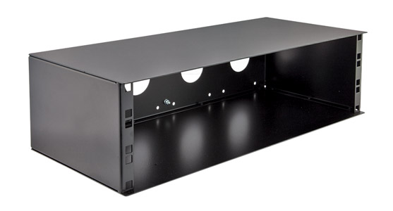 Cette gamme de boîtiers avec cornières rack intégrées, perforées à intervalles de 1U, convient au montage mural, sous des stations de travail ou virtuellement partout où doivent être placés des panneaux de connexion ou des équipements à monter en rack. Ils sont construits en acier de 1,5 mm dans des hauteurs de 2U, 3U, 4U. 6U, 8U. 12U et 20U deux profondeurs et deux largeurs, rack standard et demi-rack.