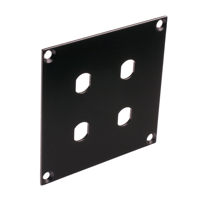• Les plaques "Universal" conviennent à tous les connecteurs de la gamme D Neutrik, aux connecteurs de la gamme "Universal" Canford et aux autres connecteurs de taille similaire. L'Opticalcon Neutrik tient, complet avec son capuchon d'étanchéité, dans la plaque Universal à simple trou (il est trop grand pour tenir dans les plaques à deux ou quatre trous).