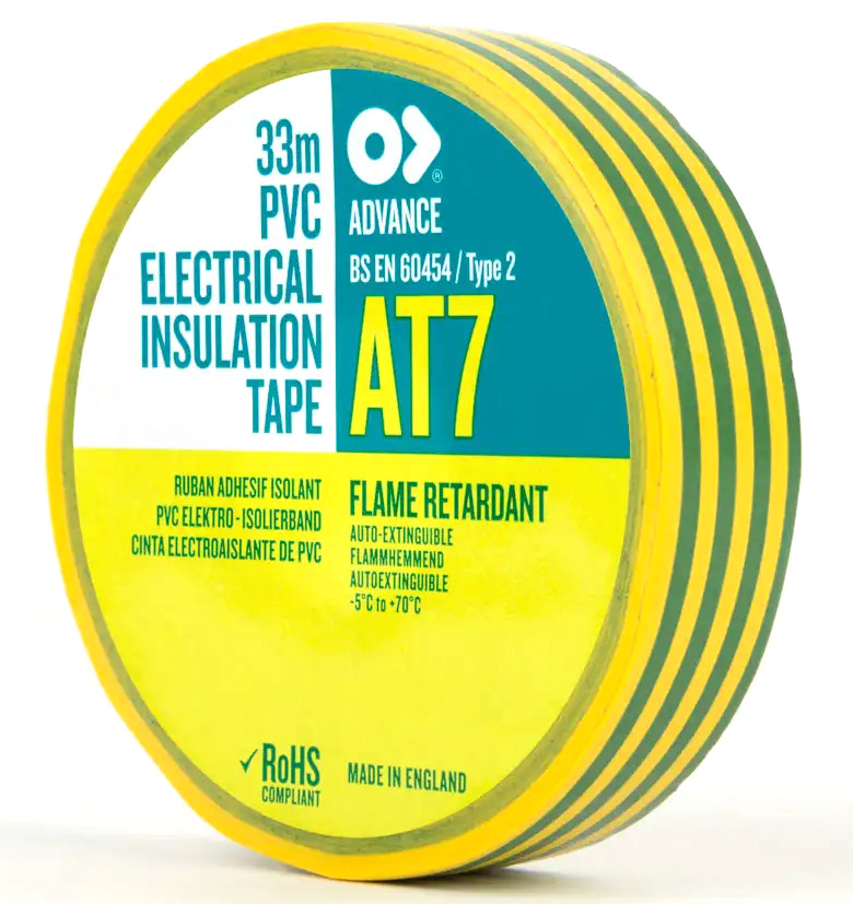 Bande de PVC isolant, conforme à la norme BS3924. Rouleaux de 33 mètres de long. Disponibles en 3 largeurs: 12 mm, 19 mm et 25 mm.