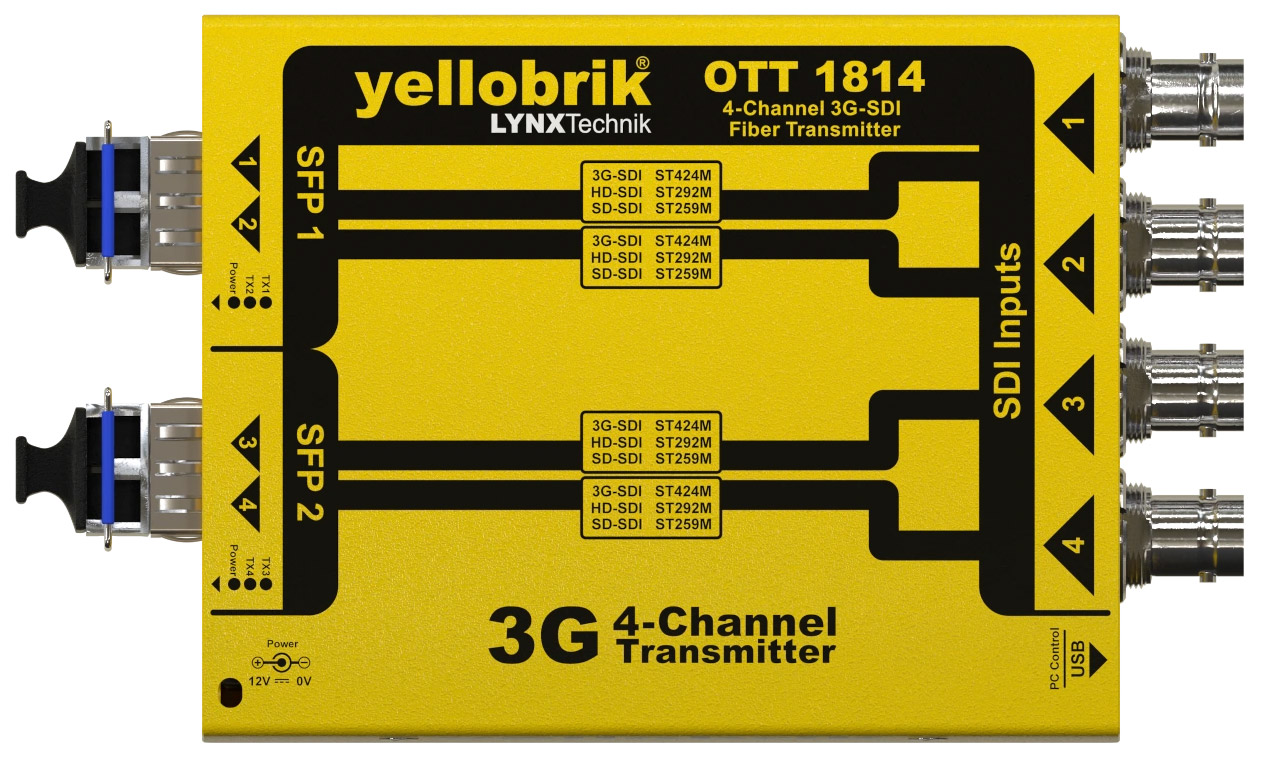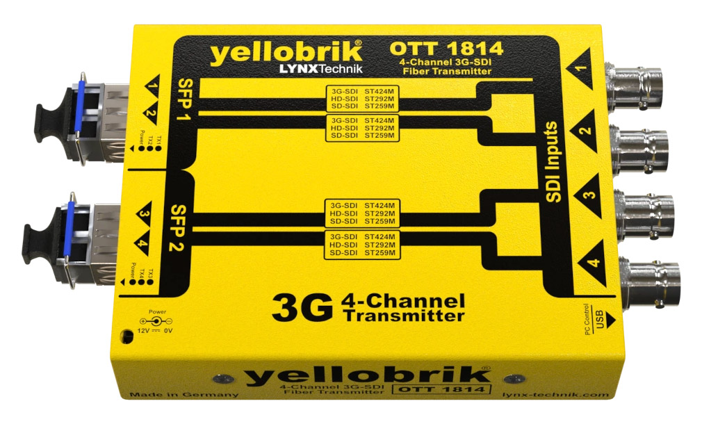 LYNX YELLOBRIK OTT 1814 FIBRE TRANSMITTER 4-Channel, 3G/HD/SD-SDI, 2x SM LC, 1310nm, 10kmLYNX YELLOBRIK OTT 1814 FIBRE TRANSMITTER 4-Channel, 3G/HD/SD-SDI, 2x SM LC, 1310nm, 10kmLYNX YELLOBRIK OTT 1814 FIBRE TRANSMITTER 4-Channel, 3G/HD/SD-SDI, 2x SM LC, 1310nm, 10kmLYNX YELLOBRIK OTT 1814 FIBRE TRANSMITTER 4-Channel, 3G/HD/SD-SDI, 2x SM LC, 1310nm, 10km