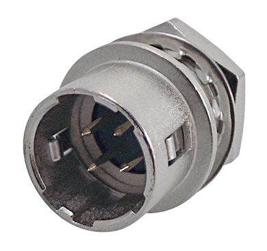 Miniatures 4, 6 et 12 points, détrompeur à 5 clef avec bague de blocage (verrouillage automatique sur insertion, déverrouillage par traction). Les contacts sont encastrés pour éviter de les endommager en cherchant la bonne position. Corps en alliage zinc/laiton fini nickel mat, broches en plaqué or. Pour câbles de diamètre 4,8 à 5,2mm (4 et 6 points), 6,8 à 7,2mm (12 points), des câbles plus fin devront être "grossis" à l’aide de gaines Hellerman. Le-porte contacts est vissé dans le corps, mais comme la partie principale a tendance à tourner, la méthode conseillée est de maintenir cette partie en la fixant sur une embase de façon à pouvoir visser le corps sans peine. Une pince plate sera utile pour serrer le corps sur l’insert, ainsi que le serre-câble, taille 8mm entre méplats pour les 4 et 6 points, 11mm entre méplats pour le 12 points.