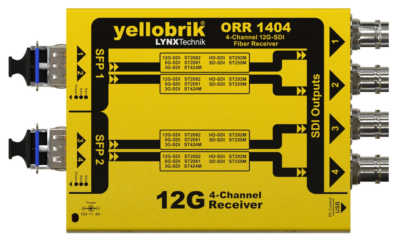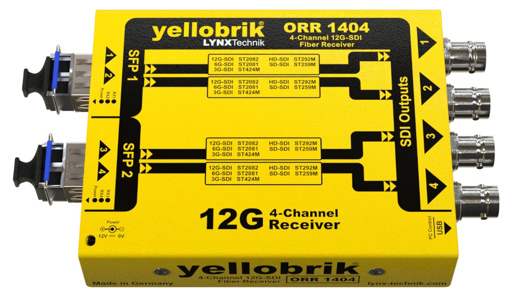 LYNX YELLOBRIK ORR 1404 FIBRE RECEIVER 4-Channel, 12G/6G/3G/1.5G-SDI, 2x SM LC, 1260-1620nmLYNX YELLOBRIK ORR 1404 FIBRE RECEIVER 4-Channel, 12G/6G/3G/1.5G-SDI, 2x SM LC, 1260-1620nm