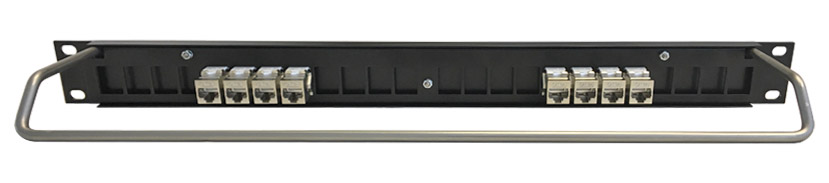 Gamme de panneaux entièrement équipés de prises RJ45 CAT5E blindées traversantes (aussi nommées double face ou dos-à-dos), permettant de patcher un système et de facilement connecter un équipement portable ou externe. Ils sont tous dotés, en standard, d'un insert papier imprimable, d'un porte légende à pression ainsi que d'une barre fixe-câbles.
