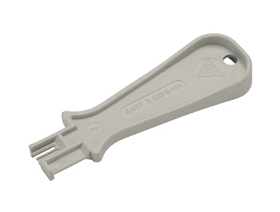 Tout raccordement sur des modules Krone doit être fait en utilisant l’outil spécial d’insertion. L’outil applique la pression nécessaire à l’établissement du contact et coupe le fil excédentaire. La fonction de coupe peut être bloquée. L’outil dispose d’un crochet coupant pour couper des fils par la suite.