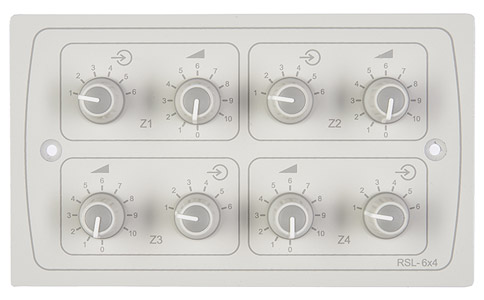 La RSL-4 est ue plaque de commande à distance permettant de sélectionner la source musicale et de régler le volume, disponible en finition noire ou blanche. Offrant un choix de quatre sources, la RSL-4 est compatible avec les amplificateurs-mélangeurs de la série MA60, ainsi qu'avec les modèles 24-120 et 24-240 de Cloud.