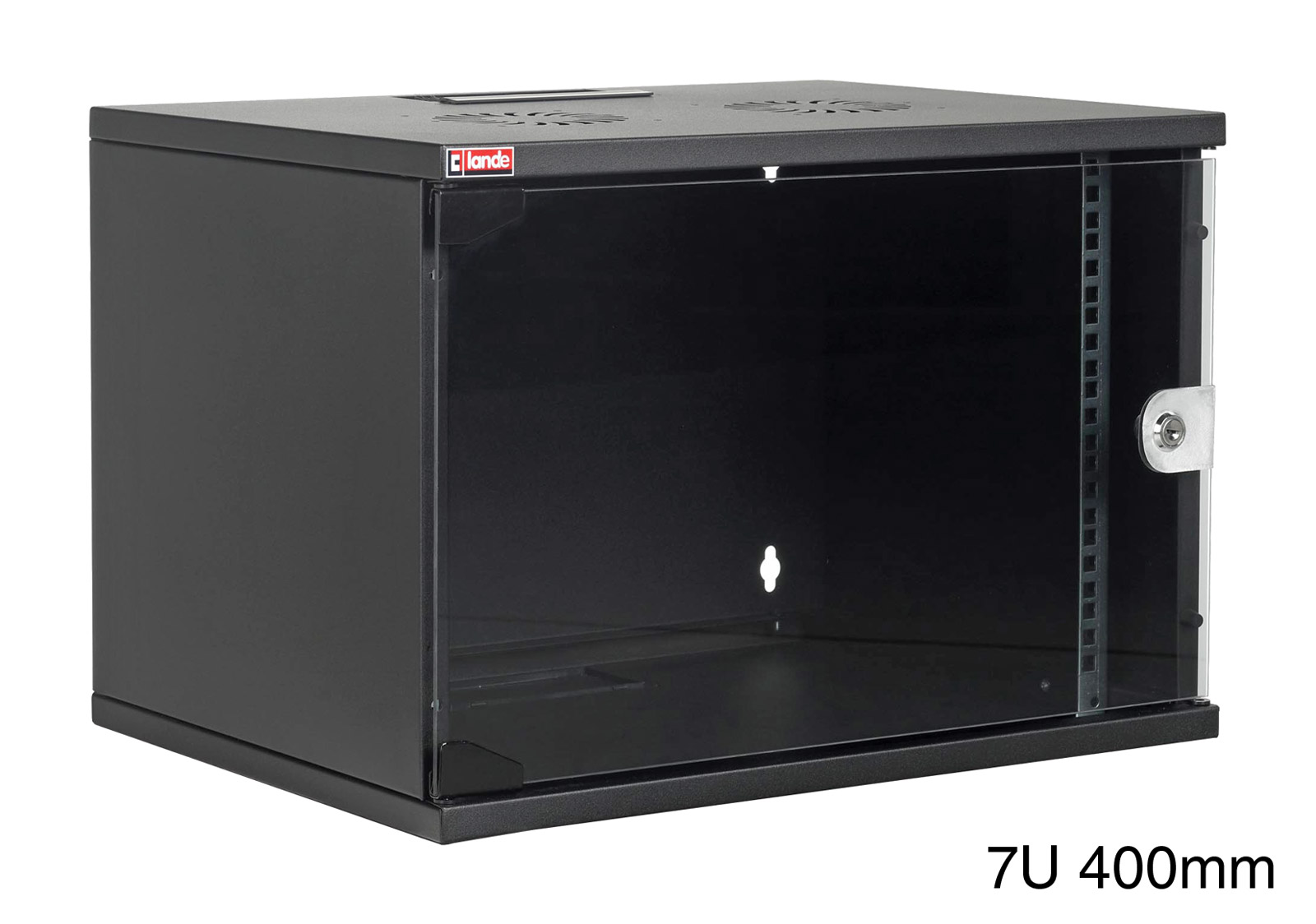 LANDE NETBOX SOHO ARMOIRE RACK MURALE 7U, prof.300mm, porte vitrée, noir, embal.à plat