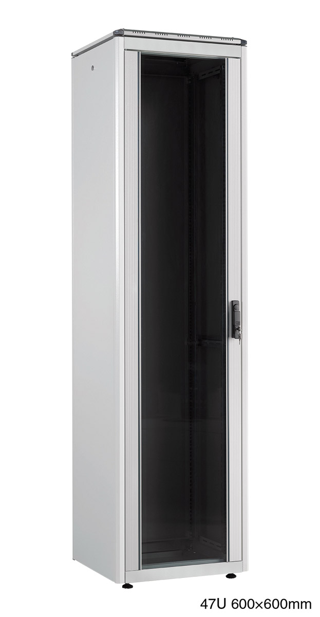 Toutes les portes sont affleurantes et s'encastrent dans le châssis du rack. Les portes avant avec vitre en verre securit fumé avec contour en aluminium extrudé avec appliques de décoration colorés. Le verrou à un point, avec poignée de porte s'encastrant dans la porte lorsqu'elle est verrouillée, quasiment au ras de la face avant. La porte a des charnières à dépose rapide permettant de changer facilement le côté de l’ouverture de la porte ou de la retirer. L’arrière du rack, pour tous les modèles sous 26U, a une porte de pleine hauteur en acier, à partir de 26U, la porte est fixée entre deux panneaux vierges de 200mm de hauteur. Des panneaux avec fentes de ventilation sont disponibles séparément. Les versions de 600mm de large, les portes arrière sont de pleine hauteur, en acier et avec verrou à cylindre. Les versions de 800mm de large sont dotées de deux portes de style ‘garde-robe’, une avec ouverture par pression et l’autre avec verrou à cylindre. Les deux panneaux latéraux en acier tiennent sur le bas du rack et ont des attaches à ressort et une serrure à barillet en haut.
