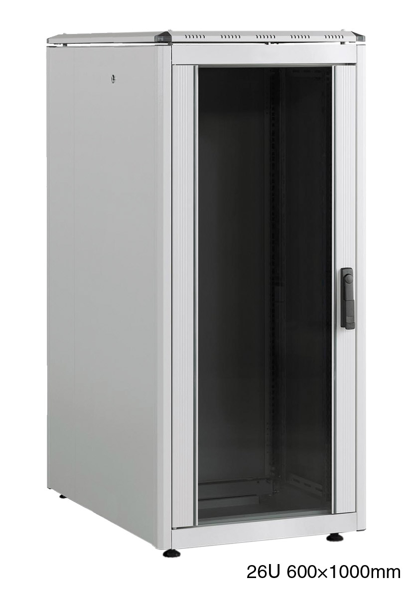 LANDE ES3626126/G-L ARMOIRE RACK 26U, larg.600, prof.1000, gris, assemblée