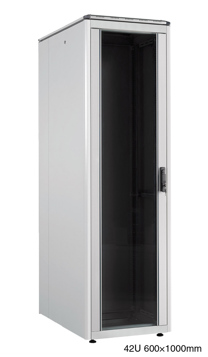 Toutes les portes sont affleurantes et s'encastrent dans le châssis du rack. Les portes avant avec vitre en verre securit fumé avec contour en aluminium extrudé avec appliques de décoration colorés. Le verrou à un point, avec poignée de porte s'encastrant dans la porte lorsqu'elle est verrouillée, quasiment au ras de la face avant. La porte a des charnières à dépose rapide permettant de changer facilement le côté de l’ouverture de la porte ou de la retirer. L’arrière du rack, pour tous les modèles sous 26U, a une porte de pleine hauteur en acier, à partir de 26U, la porte est fixée entre deux panneaux vierges de 200mm de hauteur. Des panneaux avec fentes de ventilation sont disponibles séparément. Les versions de 600mm de large, les portes arrière sont de pleine hauteur, en acier et avec verrou à cylindre. Les versions de 800mm de large sont dotées de deux portes de style ‘garde-robe’, une avec ouverture par pression et l’autre avec verrou à cylindre. Les deux panneaux latéraux en acier tiennent sur le bas du rack et ont des attaches à ressort et une serrure à barillet en haut.