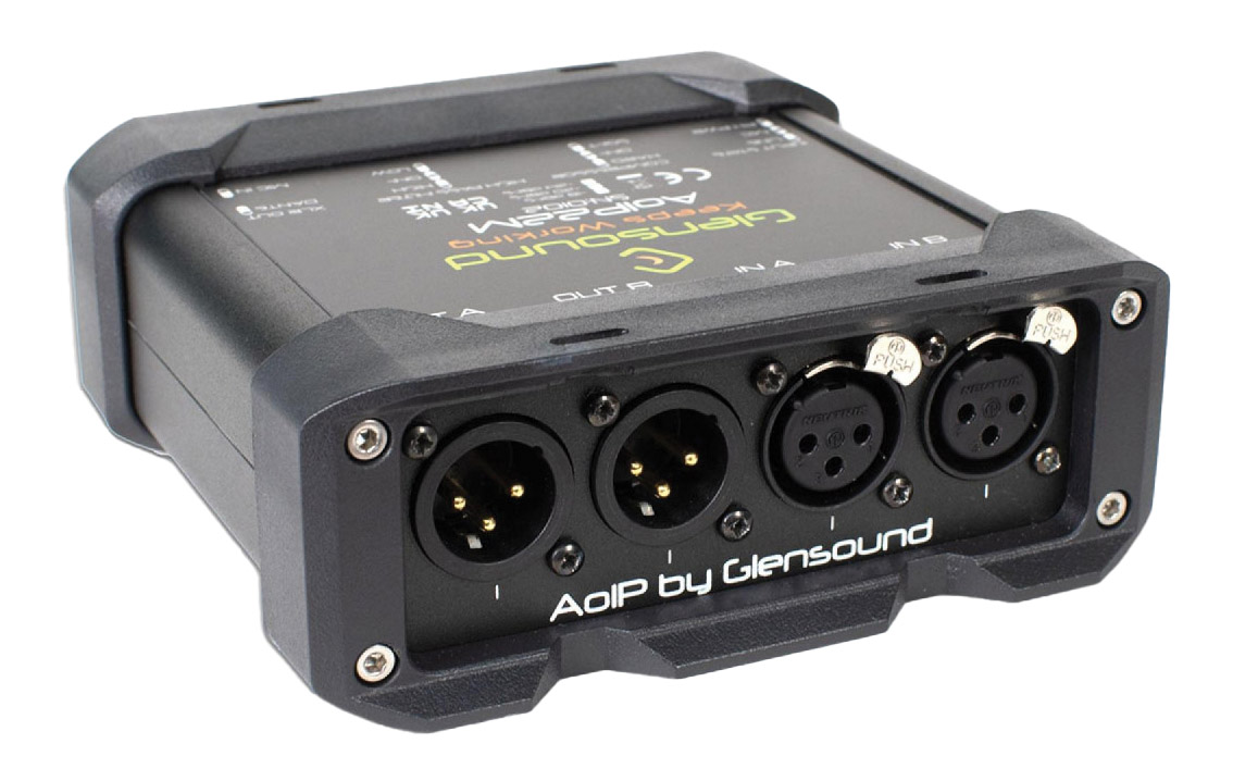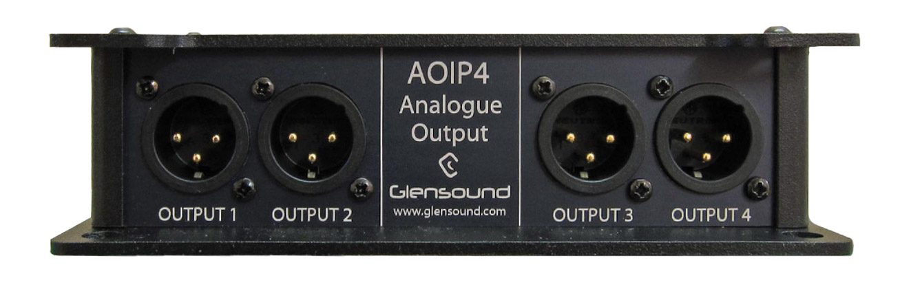 Le Glensound AoIP44 est une interface Ethernet DANTE dédiée, montable en rack, conçue pour une utilisation dans des environnements de diffusion exigeants. Elle dispose de quatre entrées et sorties symétriques et peut être utilisée comme interface autonome au sein d'un réseau DANTE, ou en association avec une deuxième interface Glensound directement reliée pour former un "snake" audio, ou encore comme interface connectée au réseau ou point à point vers les unités de commentateur DANTE de Glensound.