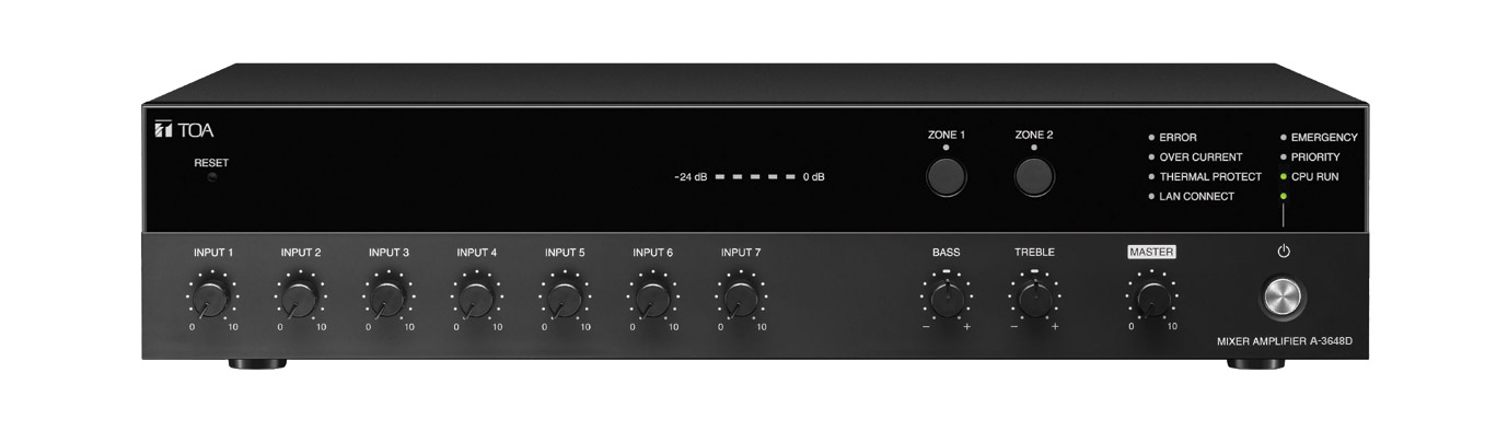 TOA A-3648D AMPLI/MELANGEUR num., 480W, 100V/4-16ohm, 7 entrées, 2 sorties zone, surveillance web GUITOA A-3648D AMPLI/MELANGEUR num., 480W, 100V/4-16ohm, 7 entrées, 2 sorties zone, surveillance web GUITOA A-3648D AMPLI/MELANGEUR num., 480W, 100V/4-16ohm, 7 entrées, 2 sorties zone, surveillance web GUI