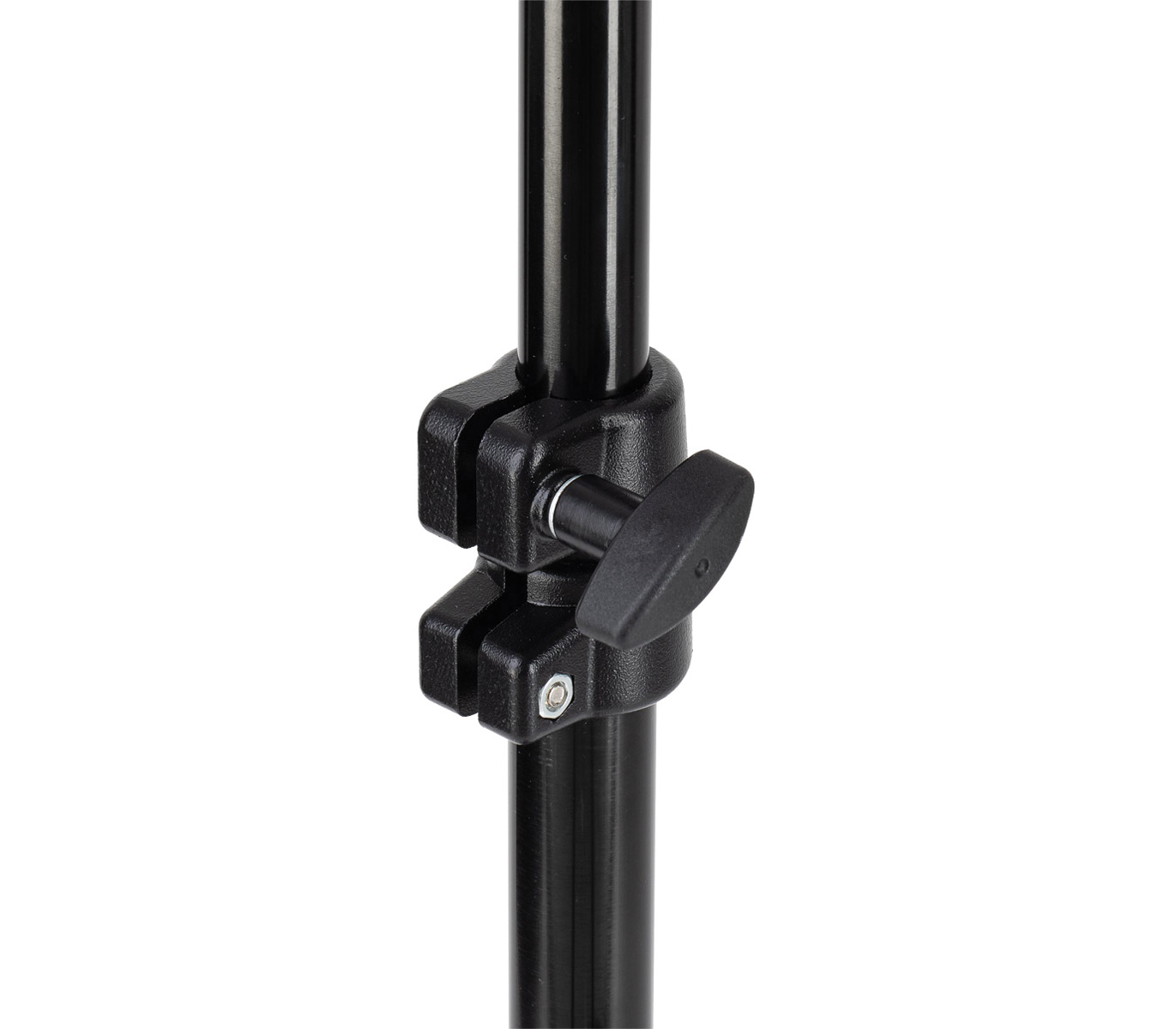 Une perche à 3 sections complète avec un contrepoids de 6,8 kg, des pinces à câble et une pince à pivot 123. Le diamètre de la perche de 35 mm contribue à la solidité du positionnement lorsqu'elle est étendue à la longueur maximale de 2,5 mètres. La charge maximale, à 2,5 m, est de 6 kg en utilisant le contrepoids.