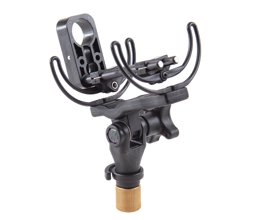 Les microphones sont bloqués dans les supports par quatre poignées souples en caoutchouc au bout de vis de précision à oreilles en acier inoxydable à tête striée en plastique. Les vis peuvent être ajustées à la main pour s'adapter à presque toutes les formes et tous les profils dans une fourchette de 18 à 55 mm. La surface de préhension des plaquettes permet aux supports de maintenir le microphone en toute sécurité, même lorsqu'ils sont positionnés tête en bas, avec une pression minimale des vis. Notez que les microphones doivent être montés dans les supports de manière à ce que leur centre de gravité soit proche du niveau de l'anneau extérieur du support.