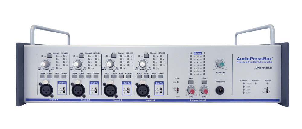 AUDIOPRESSBOX APB-448 SB SPLITTER DE CONF.actif, b.de scène,4x e.micro/ligne, 48x s.micro/ligne, accu