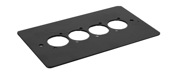 Une large gamme de panneaux s’adaptant sur les boîtiers électriques BS4662 et BS1363 à encastrer ou saillantes. Les panneaux sont livrés percés pour 1, 2, 3, 4, 6 ou 8 connecteurs de série D Neutrik ou de série Universal Canford (perçage 24 mm), ou vierges pour d’autres applications. Les vis de fixation ainsi que les accessoires de montage des connecteurs sont fournis. Les connecteurs seront commandés séparément. Notez que la grande taille du connecteur correspondant empêche l'installation du connecteur Neutrik NL4MP dans deux emplacements adjacents pour les panneaux F2 et F4).