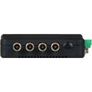 Le récepteur dispose de quatre connecteurs BNC pour les sorties SDI, plus un pour une connexion d'entrée de synchronisation, une prise RJ45 pour le câble UTP et une entrée d'alimentation coaxiale, le tout sur le panneau arrière. Le panneau avant présente une mini-prise USB pour les mises à jour du firmware et des LED témoins, une pour chaque canal SDI, plus "6G", "Act", "Pwr" et "RJ45 Sync".