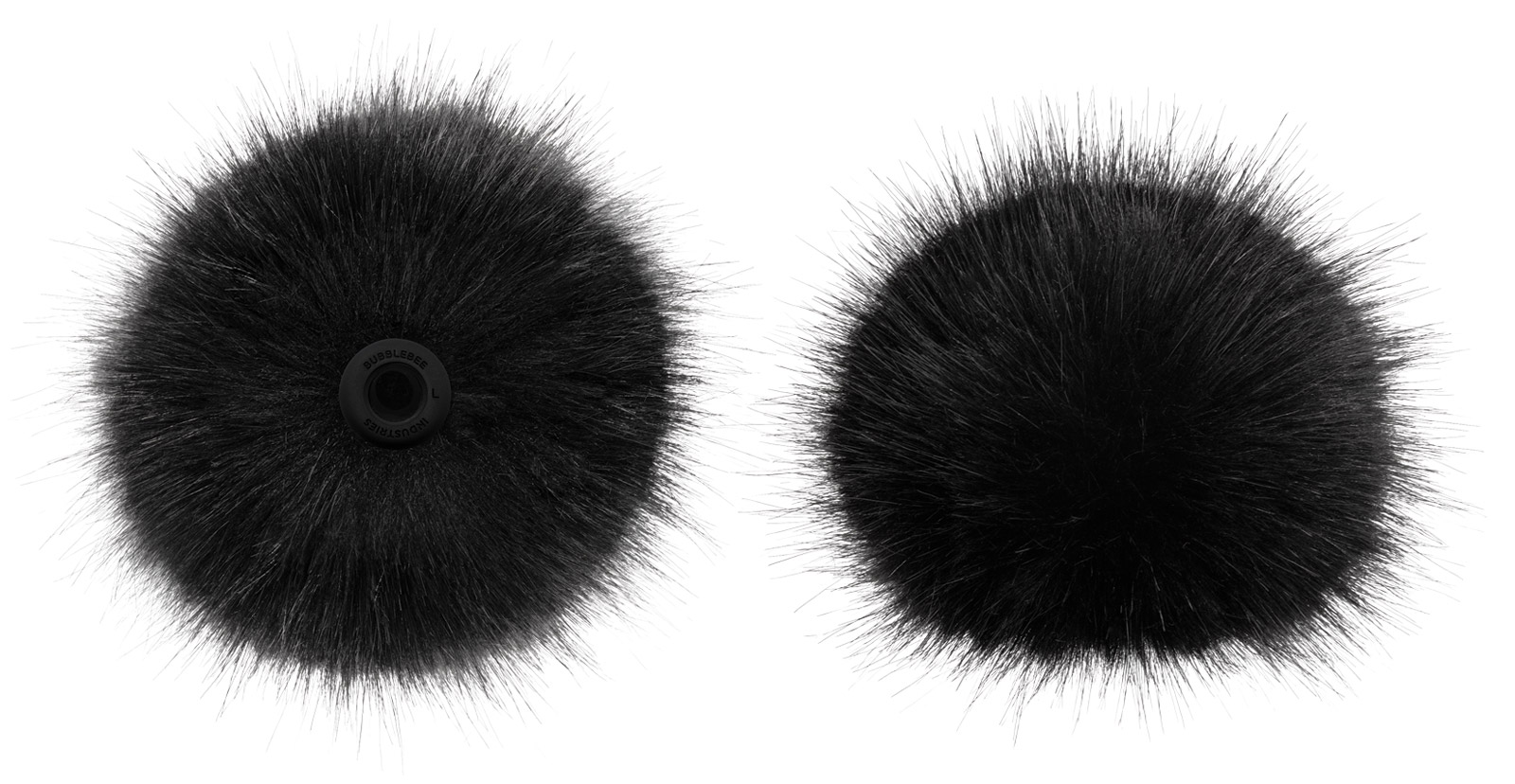 Les Windbubbles ont deux fils élastiques permettant de fixer la bonnette fourrure rapidement et de la maintenir en place pendant son utilisation. La fourrure à poils courts mats donne au Windbubble une apparence plus ronde et naturelle afin de se confondre plus facilement avec la peau ou des vêtements.