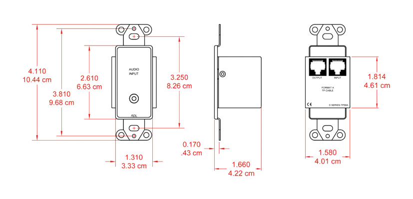 Disponible en blanc (D-TPR2A), noir (DB-TPR2A) ou en inox (DS-TPR2A), ce récepteur actif à deux paires dispose de deux sorties RCA (phono) asymétriques et le signal/l'alimentation passe par des prises RJ45. Une unique LED bleue sur le panneau avant indique la mise sous tension. L'alimentation se fait à distance via une paire torsadée RJ45, ou localement via un bornier. Poids : 111,1 g.