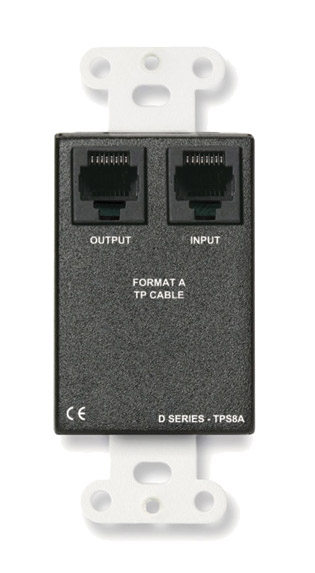 Avec une seule entrée jack 3,5 mm asymétrique, cet émetteur actif à deux paires est compatible avec les appareils de Format-A via une connexion RJ45. L'entrée peut être connectée à un équipement audio grand public avec une sortie de niveau standard de -10dBV. Les signaux sont ensuite amplifiés et acheminés vers les paires de câbles de sortie B et C. Comme les modules ne pilotent que deux paires de câbles, ils peuvent également accepter le signal et l'alimentation d'un autre émetteur de niveau micro ou ligne de Format-A. La connexion Format-A est proposée sur connecteurs RJ45. Disponible en blanc (D-TPS8A), noir (DB-TPS8A) ou en acier inoxydable (DS-TPS8A).