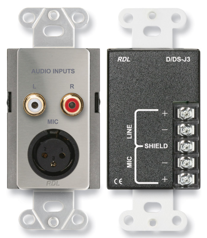 RDL DS-J3 AUDIO INTERFACE Input, 3-pin XLR/dual RCA in, stainless steel