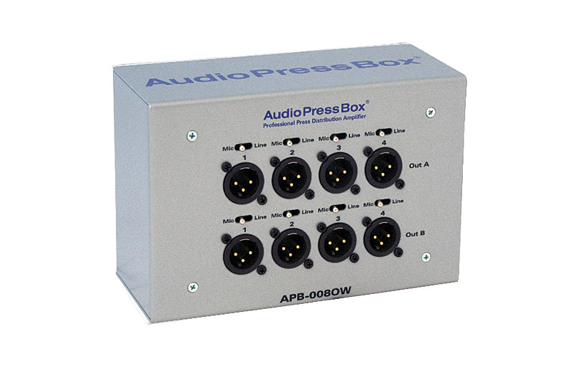 Ces splitters de presse sont utilisés afin d'éviter les encombrements disgracieux qui résultent lorsque tous les journalistes essayent de brandir leur microphone directement devant l'orateur quand les caméramans eux, veulent tout le contraire, pendant des conférences de presse. Ces splitteurs prennent un petit nombre d'entrées de microphones ou d'une console locale et distribuent le signal vers un grand nombre de sorties destinées aux médias. L'Audiopressbox propose une gamme complète de boîtes de scènes, boîtes de distribution à poser au sol, à poser sur une surface, en installations rack ou fixations murales de types passifs ou actifs ainsi qu'en formats portables, boîtiers, splitters ou en kits.