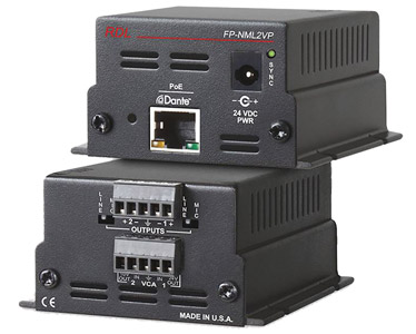 RDL FP-NML2VP INTERFACE DANTE sortie, 2x sortie micro/ligne, borniers, VCA, POE