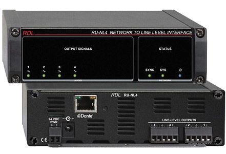 RDL RU-NL4 INTERFACE DANTE sortie, 4x sortie ligne, borniers