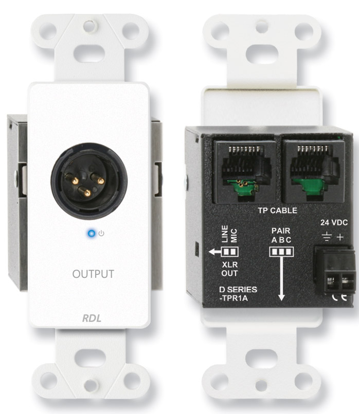 RDL D-TPR1A AUDIO RECEIVER Active single-pair, 3-pin XLR mic/line out, Format-A, white