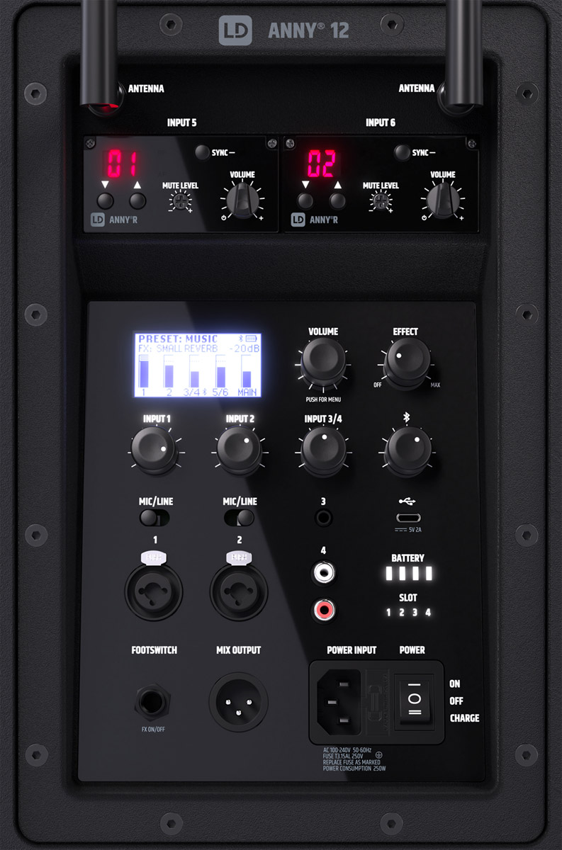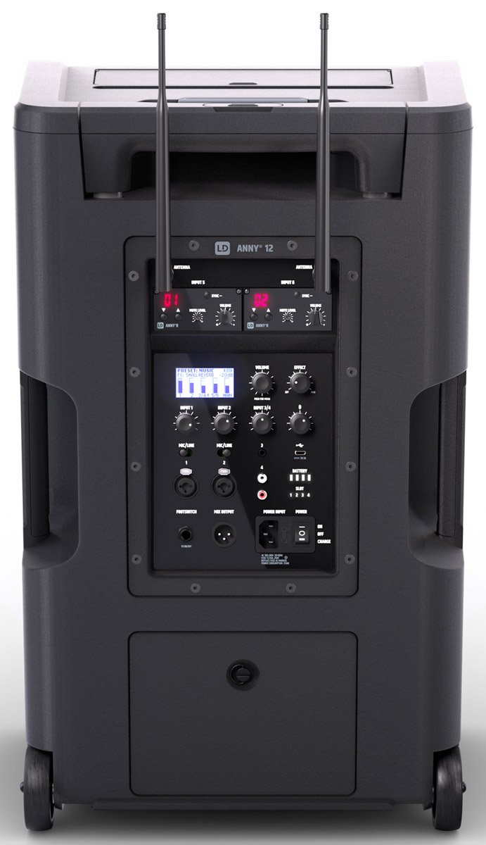 La gamme de produits LD Systems, portables et alimentés par batterie, est fournie avec un émetteur sans fil portable ou porté sur la tête et un récepteur sans fil intégré. Cette gamme permet la lecture de fichiers MP3, WAV et WMA via une connexion filaire, Bluetooth, un support USB ou une carte SD insérée.