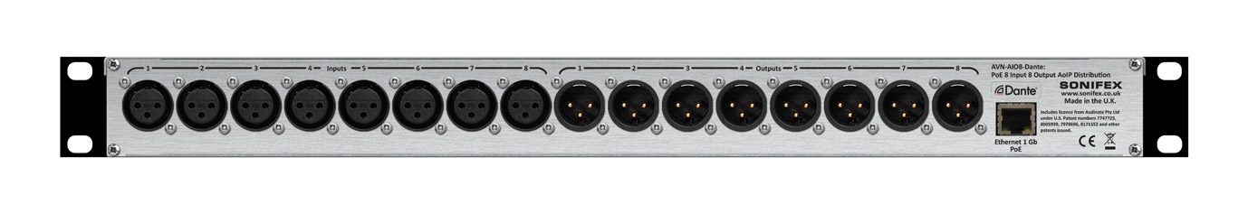 SONIFEX AVN-AIO8 INTERFACE AUDIO DANTE 8x entr./sort.analogique XLR, Dante, 1USONIFEX AVN-AIO8 INTERFACE AUDIO DANTE 8x entr./sort.analogique XLR, Dante, 1USONIFEX AVN-AIO8 INTERFACE AUDIO DANTE 8x entr./sort.analogique XLR, Dante, 1U