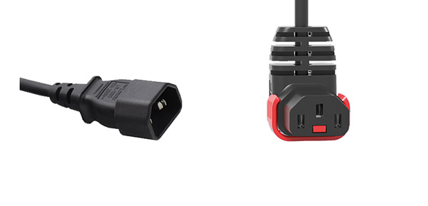 Ces cordons utilisent des connecteurs coudés femelles C13, brevetés, avec mécanisme de verrouillage interne qui bloque une embase d'alimentation IEC pour apporter un moyen simple de sécuriser un câble d'alimentation dans tout équipement électrique doté d'une embase IEC standard. Leur utilisation est fortement recommandée avec des équipements essentiels, posés ou en rack, et en cas de vibrations comme dans les véhicules de reportage, en tournée et en kit de transport où les connecteurs standard peuvent se débrancher durant le déplacement. Des câbles prêts à l'emploi sont proposés pré câblés de fiches IEC mâle standard C14, dénudés, fiches UK13A et SCHUKO coudés.