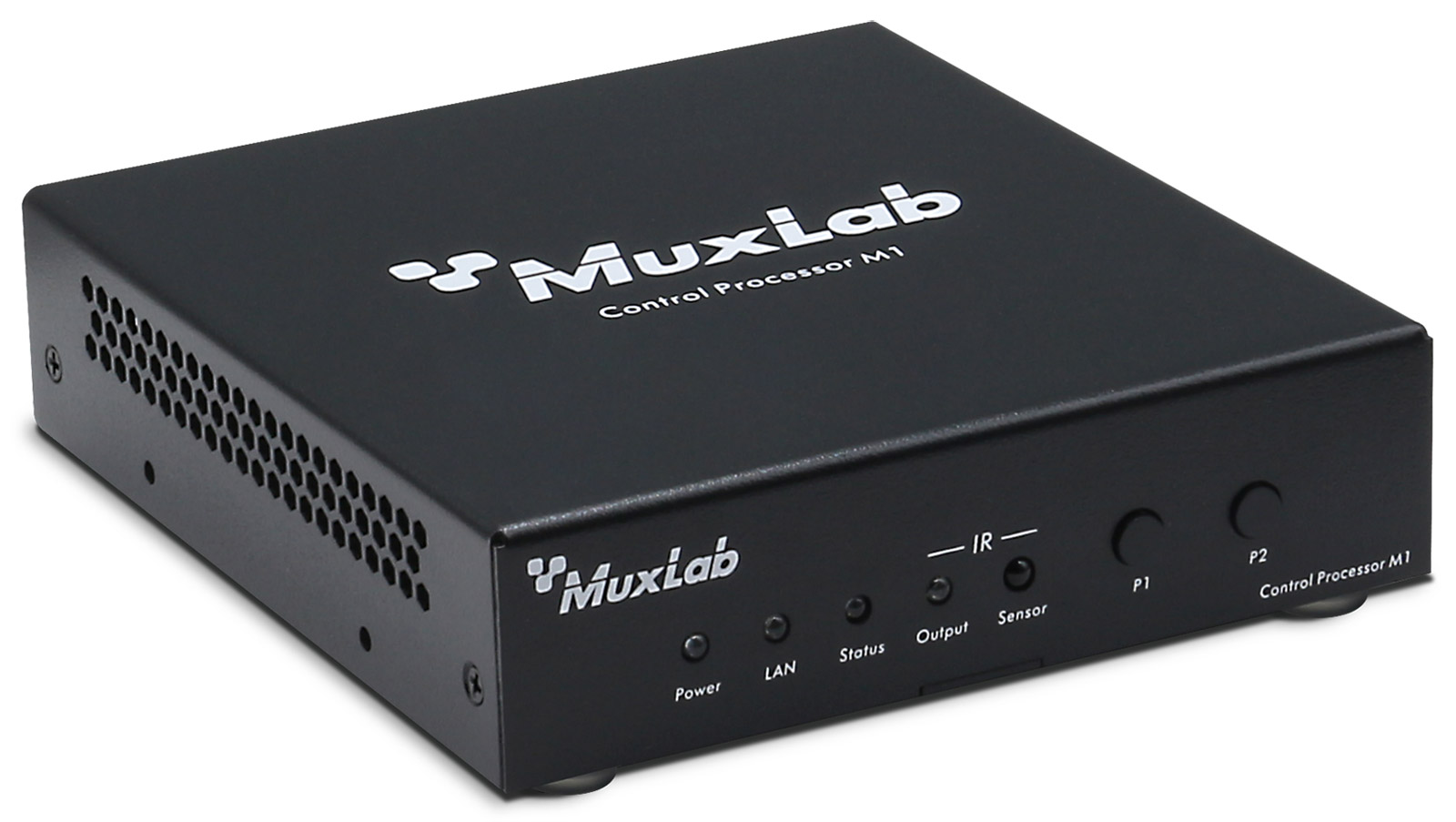 Le processeur de contrôle MuxLab M1 peut contrôler les produits MuxLab, notamment le système AV sur IP de MuxLab via le contrôleur réseau Muximus 500813, les commutateurs matriciels gérés TCP/IP, Telnet et RS-232 de MuxLab, ainsi que des appareils tiers tels que des projecteurs, des écrans de projection, des écrans d'affichage, des sources audiovisuelles et d'autres appareils similaires. Le 500819 peut être configuré et géré via l'interface Web. Alimenté par l'alimentation 24 VCC fournie.