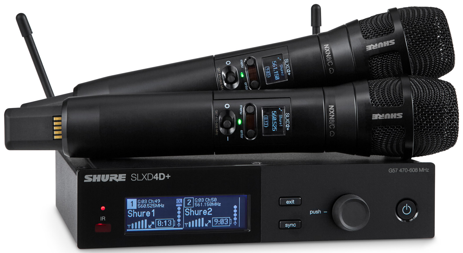 SHURE SLXD24D+/N8C RADIOMIC SYSTEM Fixed dual RX, 2x handheld TX, Nexadyne 8/C, 470-606 MHz ((G65)