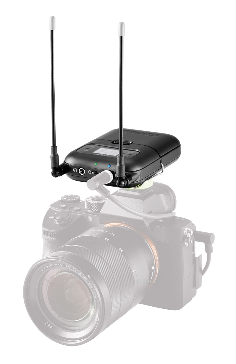 Le SLX3 peut fournir une alimentation fantôme de +12 à +48 V pour l'utilisation d'un microphone à condensateur connecté, tandis que jusqu'à 8 heures d'utilisation peuvent être obtenues en utilisant 2 piles AA ou un seul élément de batterie rechargeable SB903 en option. Avec une bande d'accord régionale de 44 MHz et 32 canaux disponibles par bande de fréquence, le SLXD3 peut faire fonctionner jusqu'à 10 systèmes compatibles par bande de télévision de 6 MHz ou 12 systèmes par bande de 8 MHz.