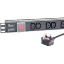Une gamme de distributeurs de courant montés en rack, disponibles avec différents types de connecteurs. Tous sont commutés, ont un boîtier en aluminium extrudé et ont une finition noire.