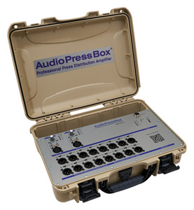 Les répartiteurs de presse sont utilisés pour éviter l'encombrement disgracieux qui se produit lors d'événements tels que les conférences de presse, lorsque chaque organisme de radiodiffusion présent essaie d'installer un microphone directement devant l'orateur, précisément là où les cameramen préféreraient qu'il ne le fasse pas. Le splitter prend un petit nombre d'entrées provenant de microphones ou de la table de mixage locale et distribue le signal à un grand nombre de sorties à l'usage des médias. AudioPressBox propose une gamme complète de types actifs et passifs dans des formats de type boîte de scène, boîte de sol, bureau, rack et montage mural, ainsi que des splitters et des kits portables et en boîtier.