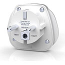 Adaptateurs secteurs 'Twist & Slide' avec deux ports USB de recharge adaptés aux prises UK, US, EU, australiennes et chinoises. Le type de sortie est choisi en tournant la partie supérieure de l'adaptateur puis en glissant le bouton latéral jusqu'au verrouillage. Charge max. : 660W à 110V, 1380W à 220V, 6A. Sortie de charge USB combinée 2100mA. Un fusible 6.3A remplaçable est inclus.