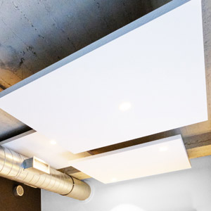 Aura Cloud is a lightweight acoustic panel available in both single (SP) or multiple-point (MP) fully adjustable hanging systems, allowing effortless and quick installation. Cloud is an ideal choice for large open environments that need broadband reverberation time control.
