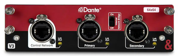 DANTE 64x64 card provides 64 channels of Dante audio I/O for recording, distribution and splits. Supports AES67 and is DDM (Dante Domain Manager) ready. Switchable from 48kHz to 96kHz operation.