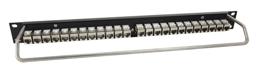 Gamme de panneaux entièrement équipés de prises RJ45 CAT5E blindées traversantes (aussi nommées double face ou dos-à-dos), permettant de patcher un système et de facilement connecter un équipement portable ou externe. Tous sont dotés d'un porte légende à pression avec bande imprimable et d'une barre fixe câbles.