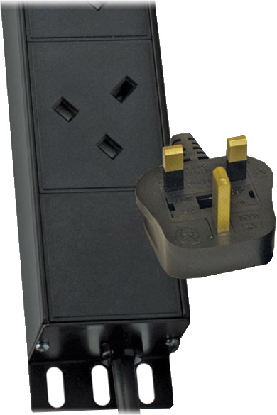 Ces modèles ont des prises modulaires 13 A 3 broches BS1363 montées à intervalles de 50 mm, pour offrir la plus haute densité possible. Le câble d’entrée est situé du côté gauche de l’unité.
