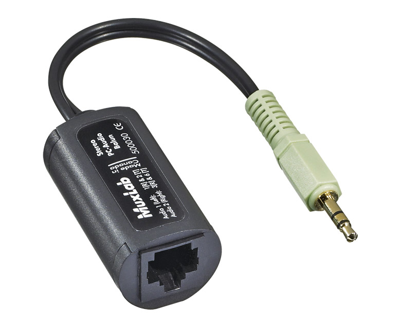 Unité à double canal qui permet de transmettre un signal audio analogique asymétrique stéréo par un câble Cat5E. La connexion audio se fait via une fiche mini-jack 3,5 mm stéréo sur un court cordon. Bande passante de 60 Hz-20 kHz, -3 dB pour une transmission jusqu'à 300 m. Bande passante de 100 Hz-20 kHz pour une transmission jusqu'à 1,5 km.