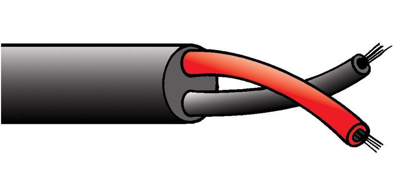 Câble haut-parleur d’usage général de construction identique au GPS, mais avec une isolation plus fine et une gaine externe de plus petit diamètre. Il est ainsi plus flexible que le GPS et occupe moins de place. Les brins sont torsadés et de couleurs rouge et noire alors que le câble porte l’indication “Loudspeaker cable” afin de ne pas le confondre avec les câbles d’alimentation