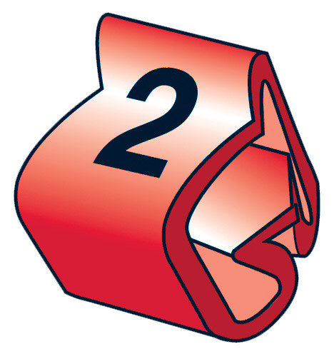 Ces marqueurs ont une forme de chevron qui permet un bon alignement du marqueur. Fabriqués en PVC souple, ils sont disponibles en quatre dimensions couvrant des diamètres de 2,4 mm à 16,0 mm. Chacune des dimensions est fournie pré-découpée, en bobine ou en paquet. De nombreuses légendes sont disponibles: chiffres de 0 à 9, lettres de A à Z. Chiffres selon le code couleur des résistances. Lettres en noir sur fond blanc.