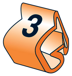 Ces marqueurs ont une forme de chevron qui permet un bon alignement du marqueur. Fabriqués en PVC souple, ils sont disponibles en quatre dimensions couvrant des diamètres de 2,4 mm à 16,0 mm. Chacune des dimensions est fournie pré-découpée, en bobine ou en paquet. De nombreuses légendes sont disponibles: chiffres de 0 à 9, lettres de A à Z. Chiffres selon le code couleur des résistances. Lettres en noir sur fond blanc.