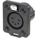 Ces connecteurs à corps universels, communs à la majorité des gammes de connecteurs Neutrik, permettent une utilisation flexible. Le corps en polyamide, avec diamètre de découpe de 24mm, peut être monté par l'avant. Des vis à tête plate en acier inoxydable M3 sont conseillées. Chaque trou de montage est doté d'un joint nécessitant une lubrification au silicone avant utilisation. Les connecteurs femelles ont une languette en acier inoxydable. L'arrière présente des contacts à souder et un joint TPE pour l'étanchéité. Une fiche en caoutchouc optionnelle permet de protéger le connecteur contre les saletés, lorsqu'il n'est pas utilisé.