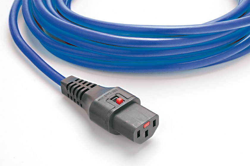 Ces cordons sont terminés par des connecteurs femelles C13 avec mécanisme de verrouillage interne brevetés. Les connecteurs "s'agrippent" à l'embase d'alimentation IEC du matériel. Leur emploi est inestimable pour le branchement d'un équipement essentiel installé en rack ou posé dans un véhicules de reportage, en tournée ou en kit de transport où les connecteurs peuvent se débrancher lors de vibrations durant le déplacement.Des câbles prêts à l'emploi sont proposés en diférentes longueurs par intervalles de 0,5 m avec aux extrémités des fiches IEC mâles standard et des fiches UK 13 A ou non terminés. Des cordons précâblés sont disponibles avec fiches mâle IEC standard C14, dénudés, fiches UK 13A et prises SCHUKO coudées.