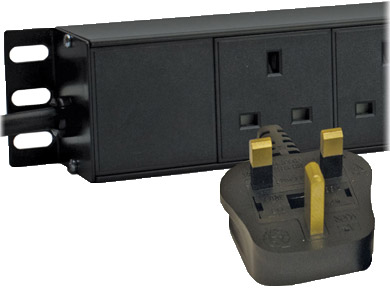 Ces modèles ont des prises modulaires 13 A 3 broches BS1363 montées à intervalles de 50 mm, pour offrir la plus haute densité possible. Le câble d’entrée est situé du côté gauche de l’unité.