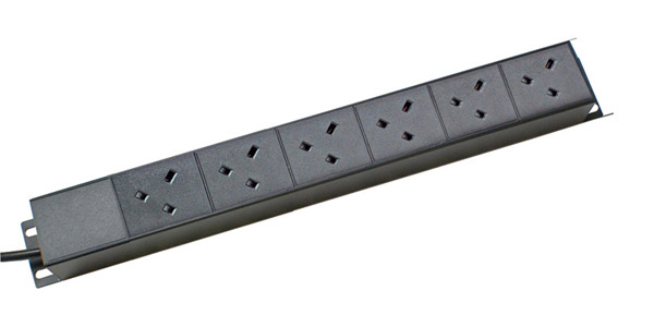 Ces modèles ont des prises modulaires 13 A 3 broches BS1363 montées à intervalles de 50 mm, pour offrir la plus haute densité possible. Le câble d’entrée est situé du côté gauche de l’unité.