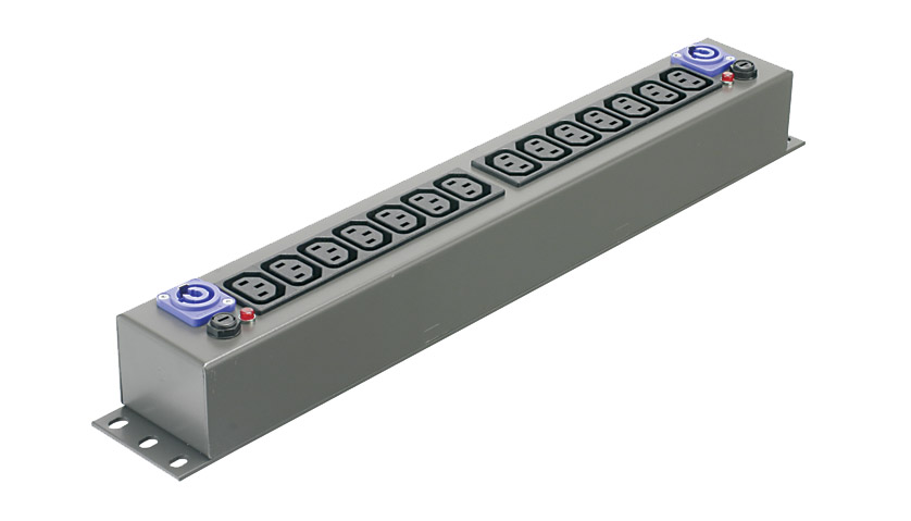 Réglettes multiprises secteur, avec deux entrées d'alimentation reliées indépendamment à deux groupes de sept prises IEC. Ces unités offrent un moyen pratique et peu encombrant de distribuer des alimentations électriques parallèles à partir de la même unité MDS quand une alimentation de secours ou un système d'alimentation sans coupure est nécessaire ou quand le courant total nécessaire doit être tiré de disjoncteurs ou sources d'alimentation séparés. Conçues pour un montage vertical ou horizontal à l'arrière d'un rack, dans des flight cases ou pour un encastrement dans des murs ou sous des stations de travail. Une option fixe-câbles multiposition accueille la plupart des types de connecteur de câble IEC.